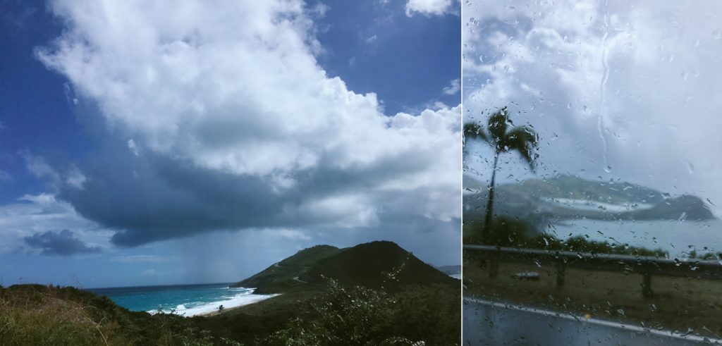 —(Above: proof that the weather wasn’t always perfect. The locals call it “liquid sunshine” where it rains, sometimes pours, for just a few minutes, then the sun comes out again. This happened on almost every island we visited.)—-
