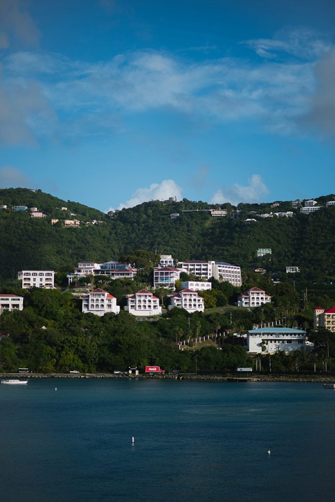 St. Thomas is one of the small island nations that belongs to the US Virgin Islands. They use US currency and calls, data and text messages are domestic rates. For us, that meant we could facetime with family while standing on the highest point of the island (without outrageous roaming charges). Instead of booking a tour through the cruise line, we decided to hire a local taxi to drive us around the island. He drove us around with another couple in an open air taxi. It was a great and affordable way to see the island, although there is a little bartering involved 😉