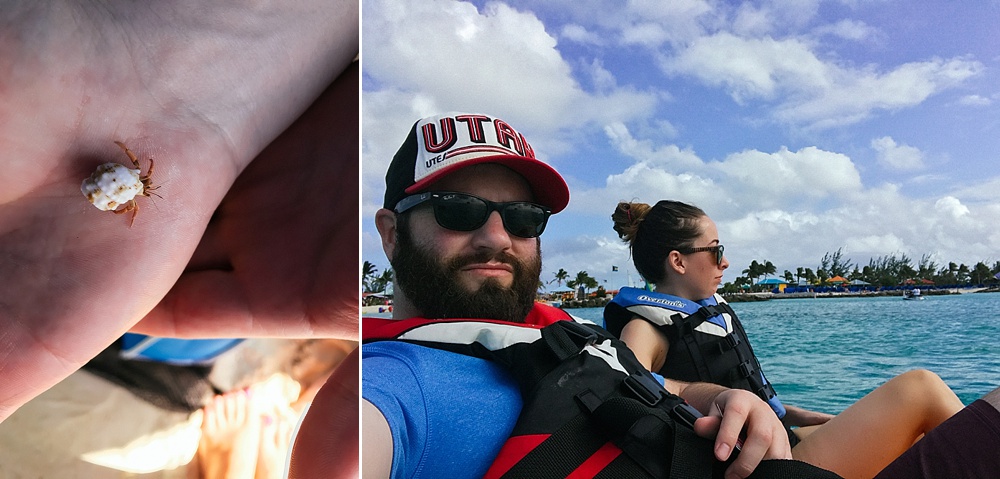 We spent a heavenly day on the southern most point of Eluethera Island in the Bahamas. Like many of the cruise lines, Princess owns their own little bit of paradise. Princess Cays is separated from the main island by a small causeway. It was a great introduction to the Caribbean. We spent the day basking in the sun while cabana boys brought us ice cold Cokes and island food (jerk chicken, fish tacos, etc.). There is no dock for this stop. The ship drops anchor nearby and smaller boats bring us to shore (it’s called tendering). We swam in crystal blue water. We took pedal boats out for a spin (literally a spin, because we couldn’t work the rudder). We met a little crab and named him Sheldon. We are pretty sure Sheldon got eaten by a bird shortly thereafter. We snorkeled and saw all sizes of tropical fish. Yeah, I’d go back 😉