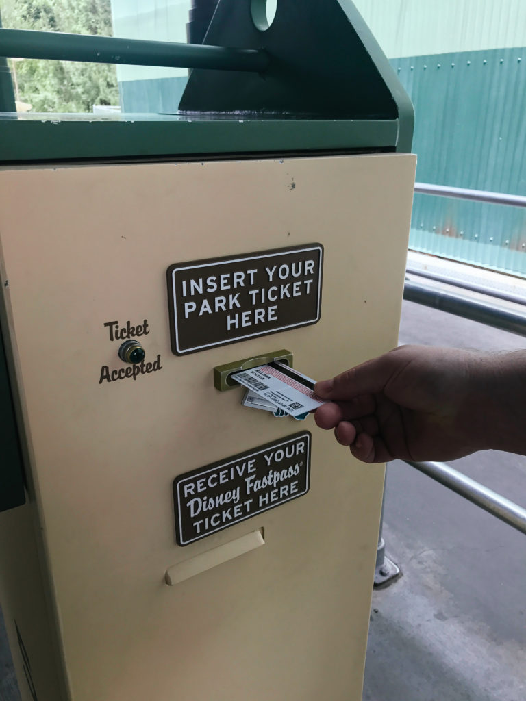 1. FREE: Pick up a fast pass by taking your physical park tickets to a machine (generally found just outside the ride itself, they are called fast pass distribution areas). There is a big sign in the distribution area that tells you what time you can use the fast pass before you get it. You simply insert your park ticket into the machine and then a fast pass receipt/reminder comes out. You then remove your park ticket. DO NOT FORGET YOUR PARK TICKET (been there, done that, not fun). Once you’ve done this, the fast pass is now associated with your park ticket. When it’s time to use the fast pass, you just present your park ticket at the ride (in the fast pass line) and you zip up the line, bypassing the hoards. Pro Tip: send a runner to get the fast passes for your group, while the rest of you get in line for something else.