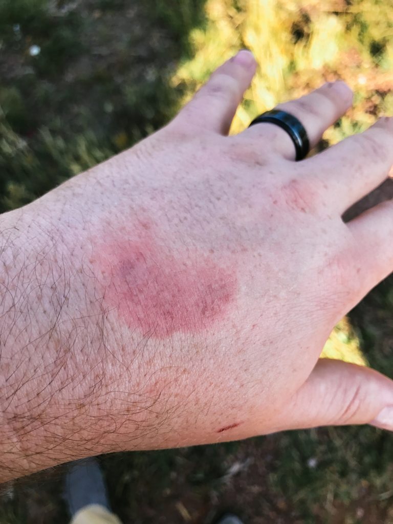 This was literally the day after we totalled our car. Rhett got a nice burn from the airbag.