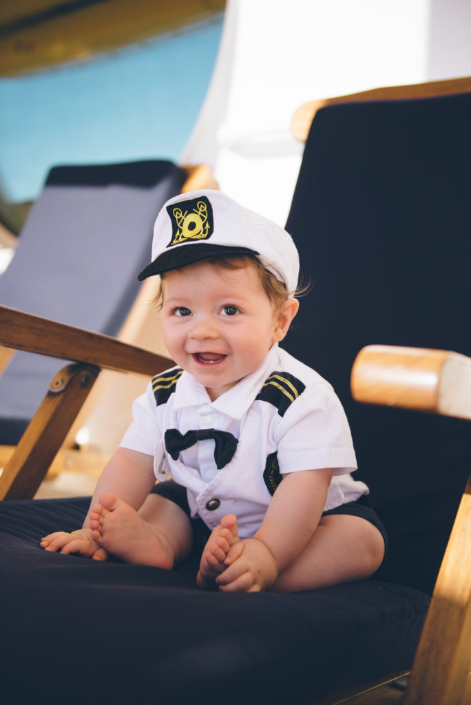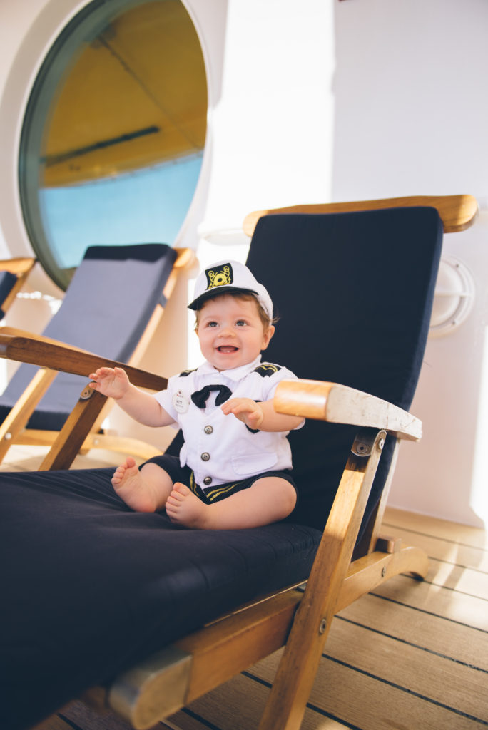 Find Kitt’s captain outfit here and the cute name tag here. Because this was a Halloween cruise, we had a lot of opportunities to dress him up. He got SOOOO much attention and he just ate it up. One of our favorite moments was meeting the captain of the boat with Kitt in his captain outfit.